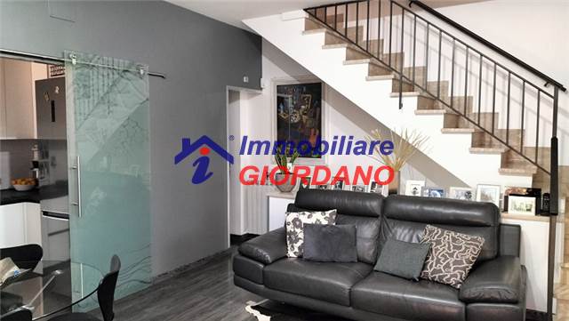 Piano terra: salone con affaccio sul terrazzo perfetto per godersi cene all'aperto e momenti di relax, cucinotto separato da una porta scorrevole a vetri e bagno di servizio.